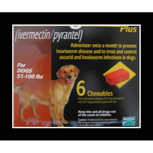 メリアル社のフィラリア予防薬及び回虫、鉤虫の駆除と予防。成分はイベルメクチン(含有量272mcg/1錠)とピランテル(227mg/1錠)。